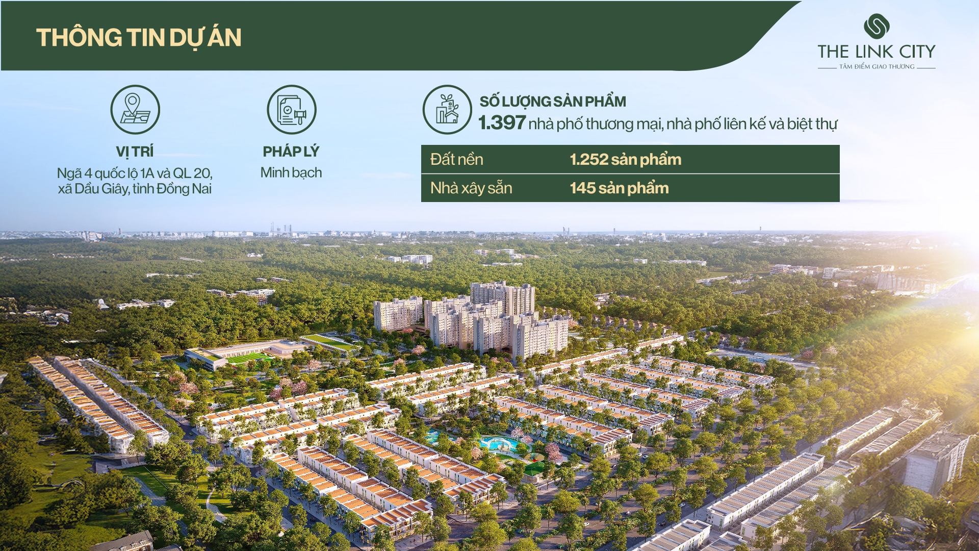 The Link City được quy hoạch bài bản, đồng bộ hạ tầng và không gian chức năng, giữ vai trò “hạt nhân” trong định hướng phát triển đô thị Dầu Giây. Dự án cung cấp hơn 1.397 sản phẩm shophouse, nhà phố liên kế và biệt thự – phù hợp nhu cầu an cư, kinh doanh và đầu tư.